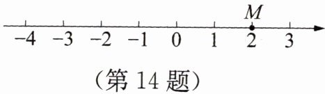 14. 已知有理数$a$、$b$,其中数$a在如图所示的数轴上对应点M$,$b$是负数,且$b在数轴上对应的点与原点的距离为3$.
