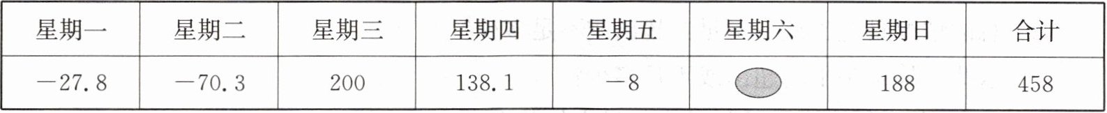 表中星期六的盈亏数被墨水污染了,请你利用所学知识计算出星期六的盈亏情况是【