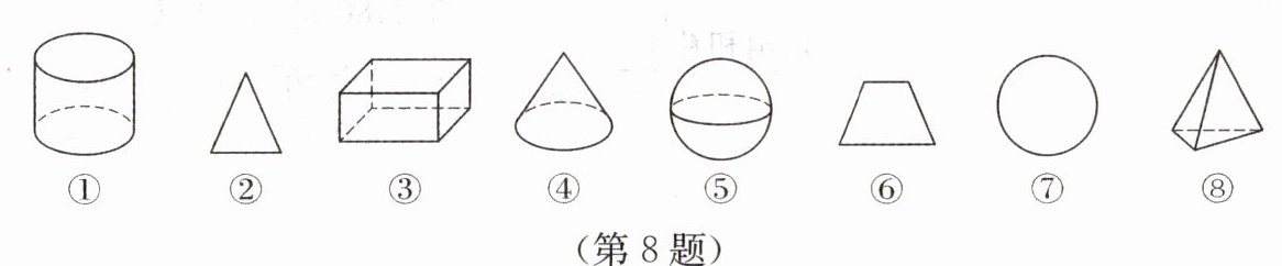 (2)柱体:①③;锥体:④⑧;球:⑤