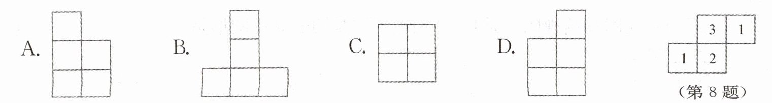 8. 如图是由几个小正方体搭成的立体图形的俯视图,小正方形中的数字表示在该位置小正方体的个数,则这个立体图形的左视图为【