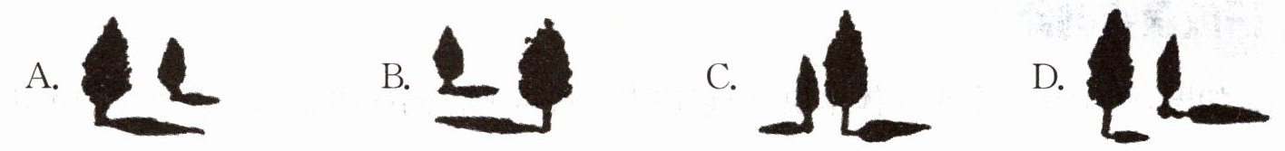 3. 下列图形中,表示两棵树在同一时刻阳光下的影子图形的可能是【