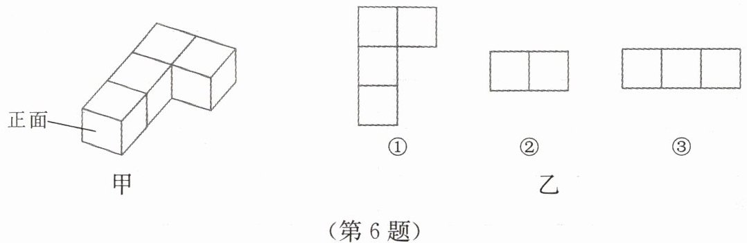 6. 如图甲是一组立方体的组合体,则图乙中为该组合体主视图的是