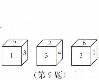 9. 有一个正方体木块,它的6个面分别标有数字1~6,如图是从不同方向看到的这个正方体木块上的数字,则数字6对面的数字是【