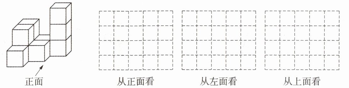 (1)请在指定方格图中画出该几何体从正面、左面和上面看到的形状图;