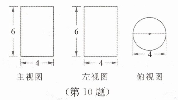 10. 如图是一个立体图形的三视图,根据图中标注的数据可求得这个立体图形的体积为【