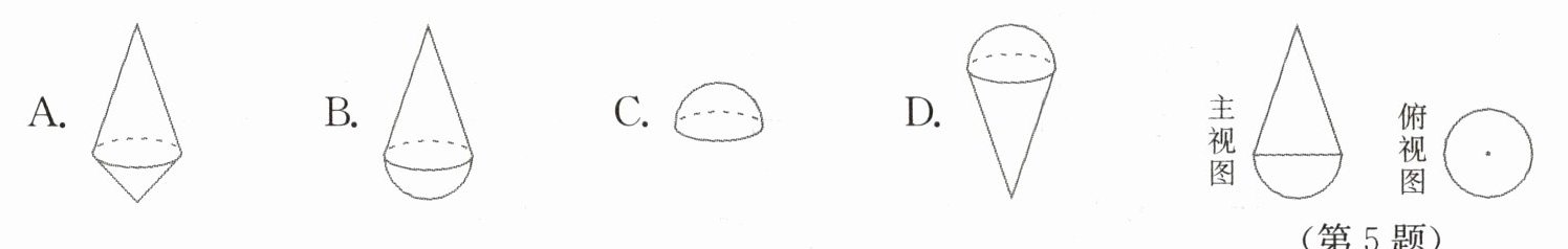 5. 如图所示的主视图和俯视图所对应的物体是【