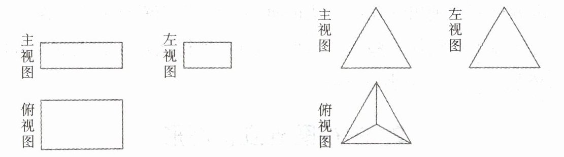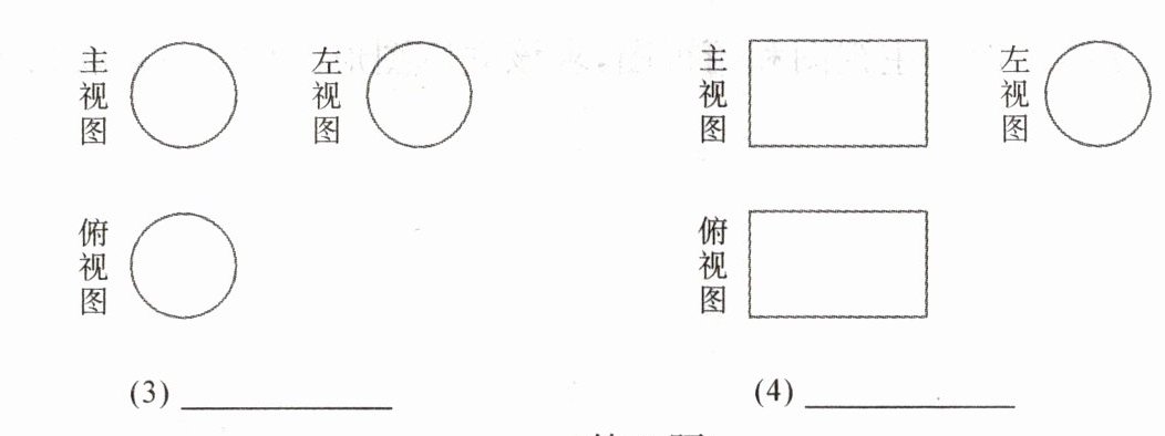 6. 如图(1)~(4)是一些立体图形的三视图,请在横线上填上相应立体图形的名称.