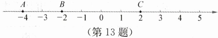 13. 如图,数轴上有三个点$A$、$B$、$C$,请回答: