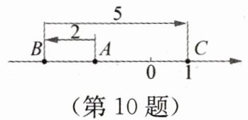 10. 如图,数轴上的一动点$A向左移动2个单位长度到达点B$,再向右移动$5个单位长度到达点C$.若点$C表示的数为1$,则点$A$表示的数为【