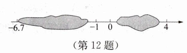 12. 如图,小明在写作业时,不慎将墨水滴在数轴上,根据图中的数值,确定被盖住的整数共有