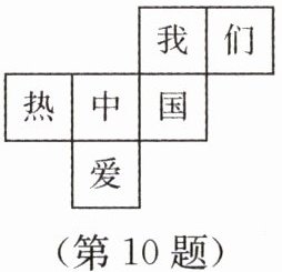10. (达州中考)如图,正方体的表面展开图上写有“我们热爱中国”六个字,还原成正方体后,“我”字对面的字是【