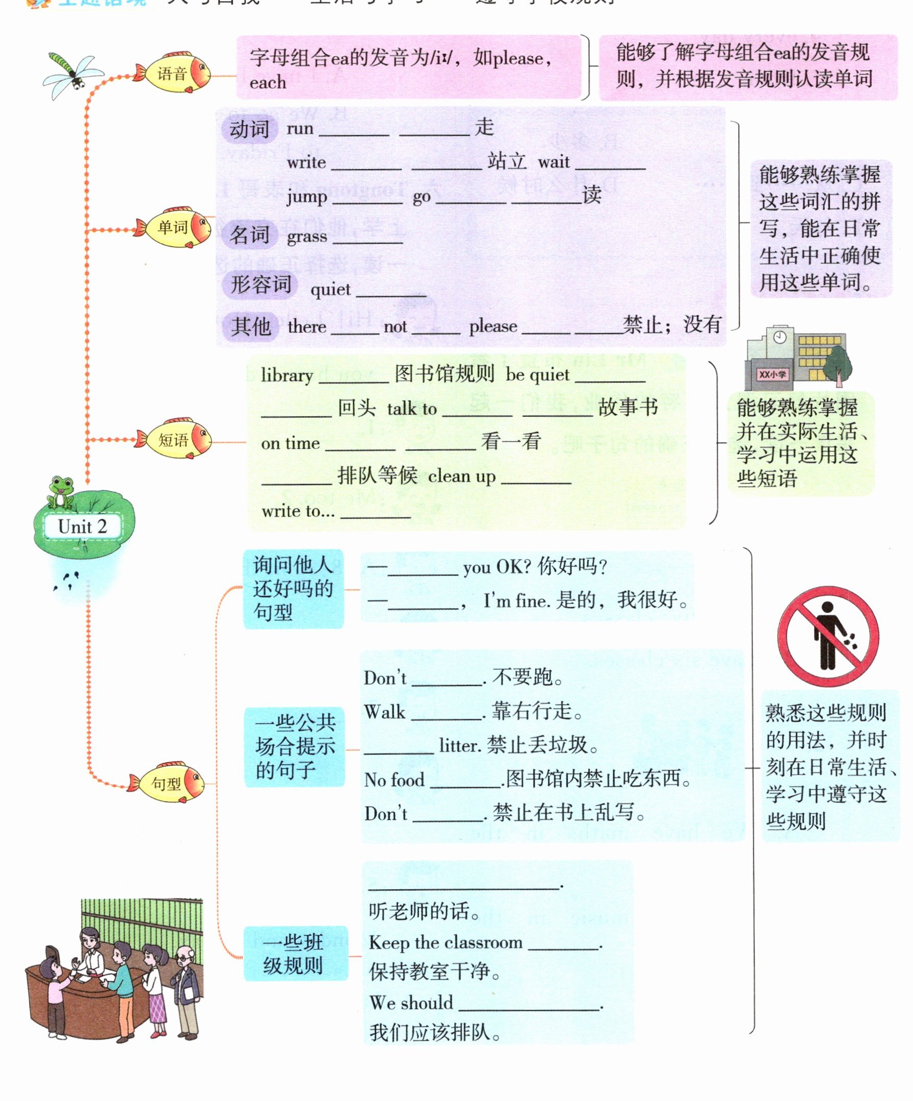 Are; Yes; run; right; Don't; in the library; write on the books; Listen to the teacher; clean; wait in line