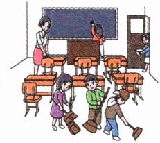 一、老师在介绍学校规则,听一听,选择与所听内容相符的图片吧。
