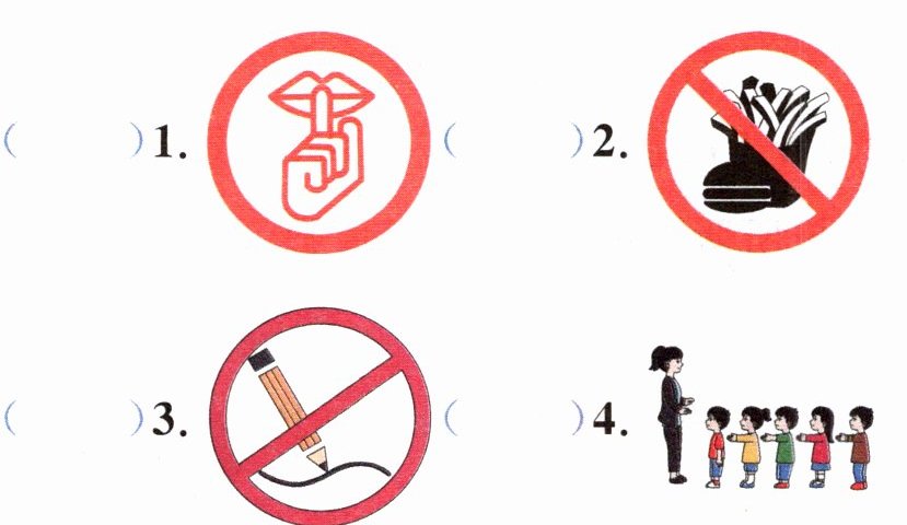 七、新角度·趣味识图 Wang Na 在图书馆看到了下面这些标志,读一读,判断句子与图片是(T)否(F)相符。