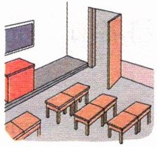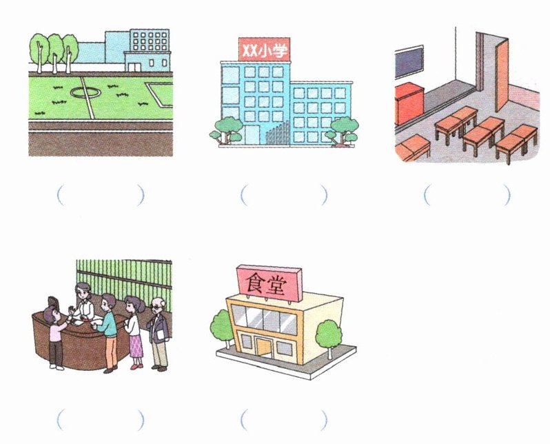 二、Mark 在跟妈妈讲自己的学校建筑,听录音,用 1~5 给下列图片排序。