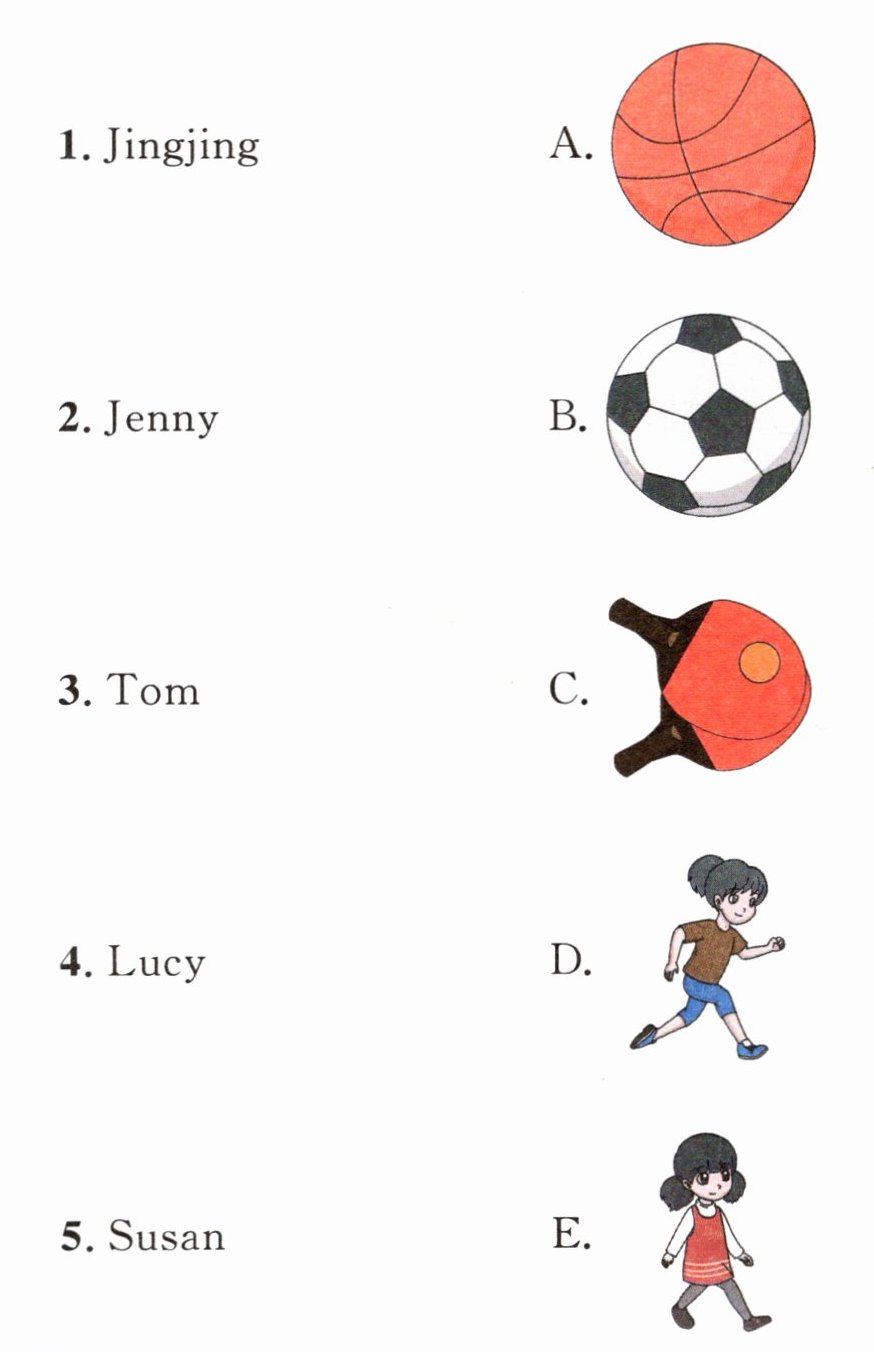 二、Jingjing 和她的朋友们都做什么运动?听一听,选择正确的图片并连线。