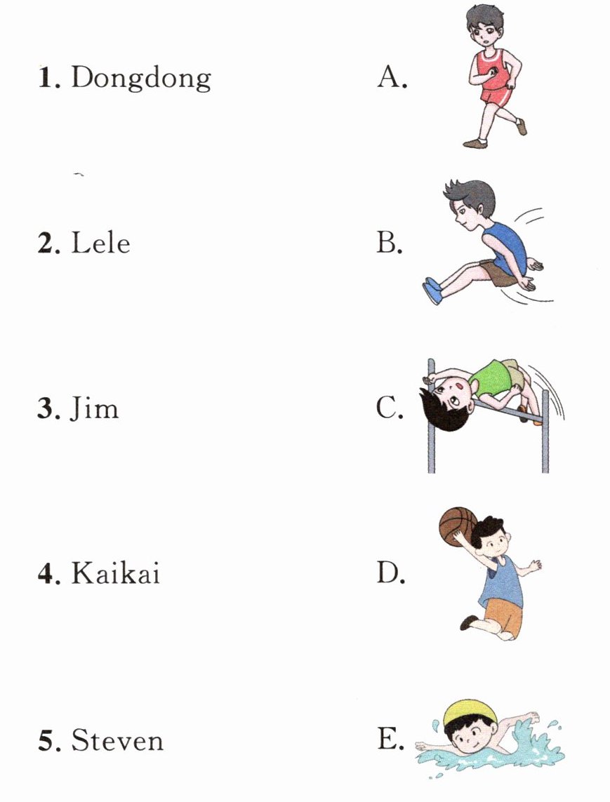一、Mr Li 在领读关于运动的句子,听一听,用 1~5 给下列图片排序吧。