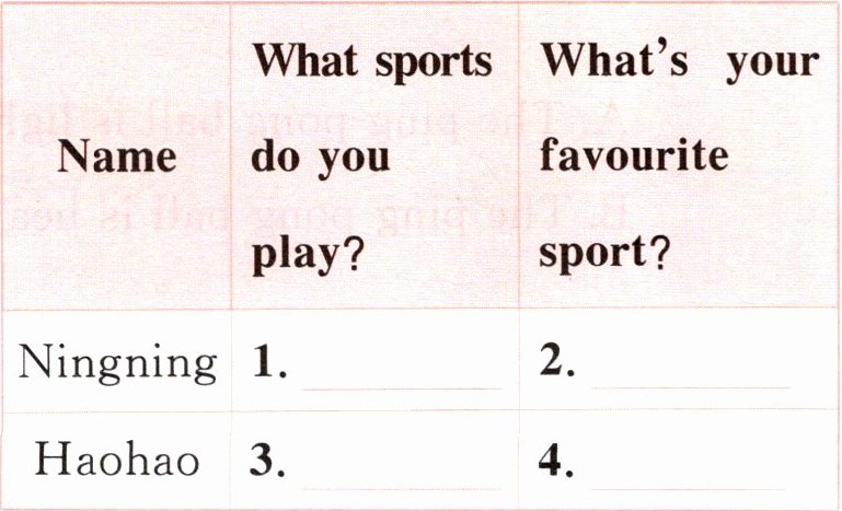 八、Ningning 和好朋友 Haohao 在聊天,读一读他们的聊天记录,一起选择正确的选项完成表格吧。