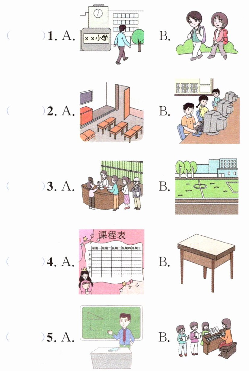 一、Zhang Yan 陪着妈妈参观学校,听一听 Zhang Yan 是如何介绍学校的,并选择相符的图片。
