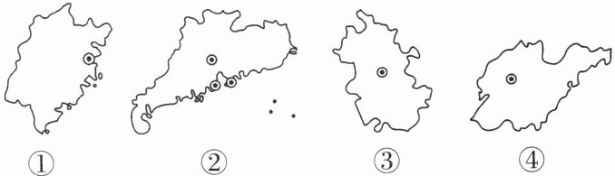 北京市某中学地理社团的同学们制作了我国 34 个省级行政区的“名片”。“名片”正面是省级行政区的轮廓和行政中心,背面是省级行政区的关键词。同学们使用“名片”进行地理竞赛活动。下图为其中 4 个省级行政区的“名片”。据此完成第 11—12 题。
