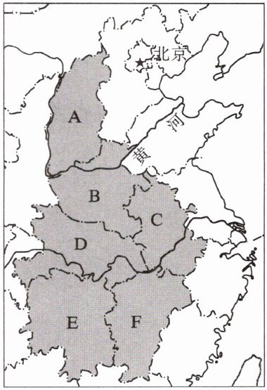 (1)图中阴影部分为我国中部地区,包括的省级行政区域单位有: