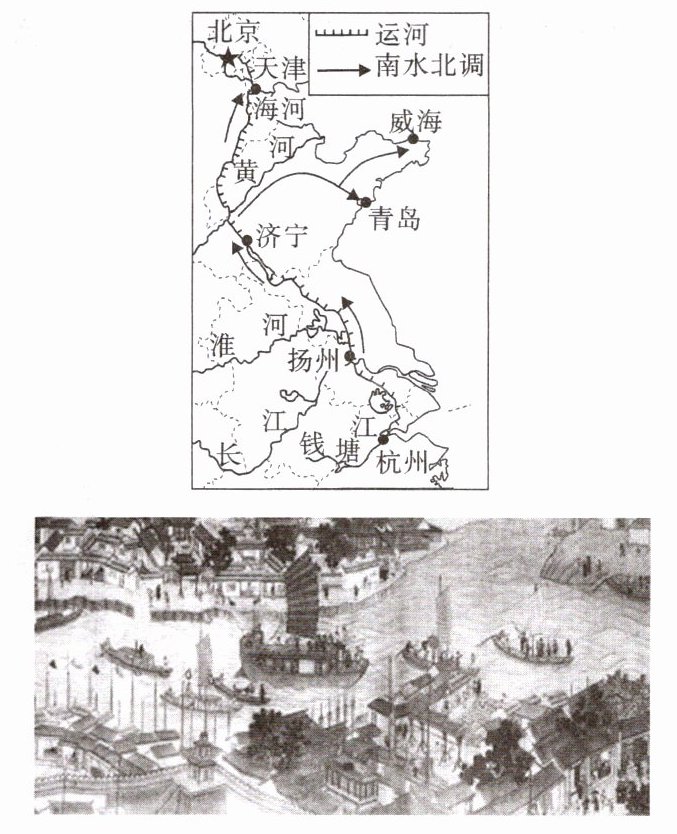 (1) 写出京杭大运河从南到北依次连接的五大水系。说明历史上京杭大运河的主要作用。