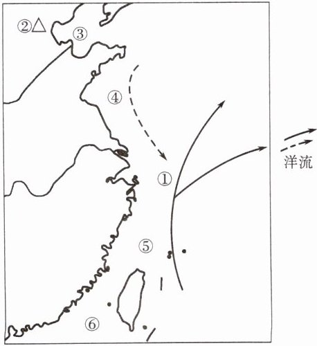 (3)①处位于东海宽广而较浅的大陆架,且位于寒暖流交汇处,长江钱塘江入海口附近,容易形成渔场。