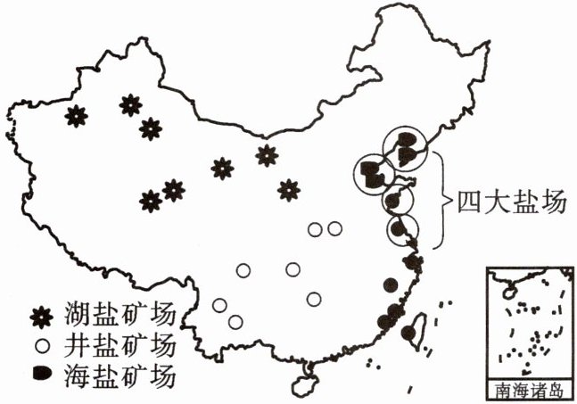 (3)中国的四大盐场均在北方地区沿海,且最大盐场