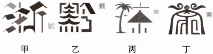 文化的形成与自然环境息息相关,不同的地域文化有各自不同的特点。下图为一位设计师为四个省区简称设计的艺术字,这些字蕴含着地方特色的文化元素。完成第 19—20 题。