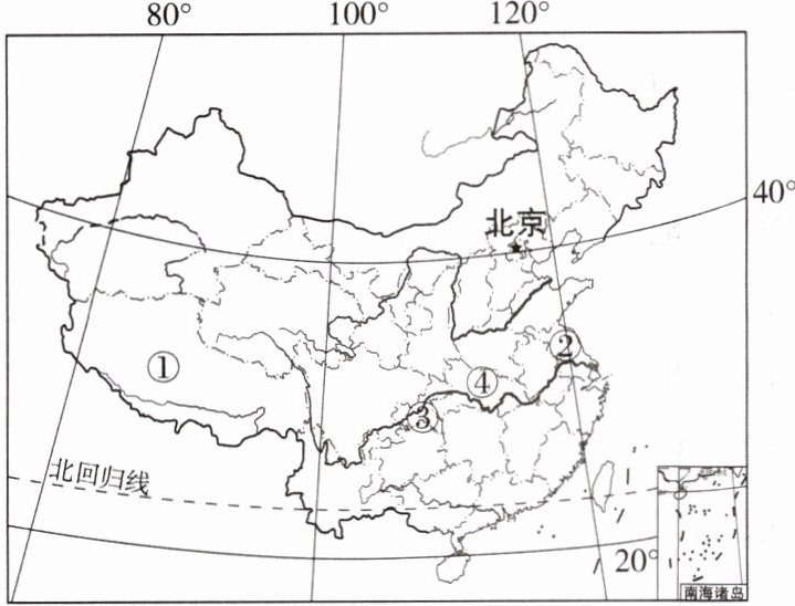 2025 年春节联欢晚会于大年三十 20 点(北京时间)准时开播,四个分会场分别设在重庆、武汉、拉萨、无锡。读图,完成第 16—17 题。