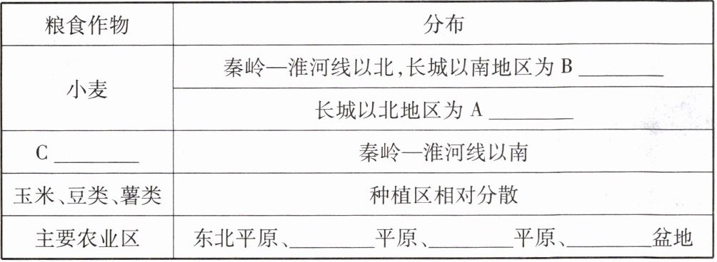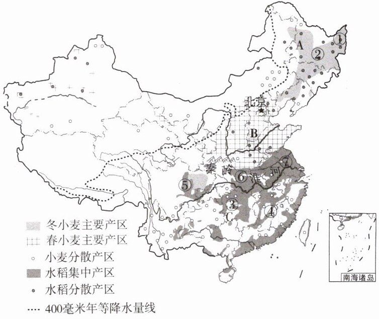 1. 冬小麦 春小麦 水稻 华北 长江中下游 四川 2.