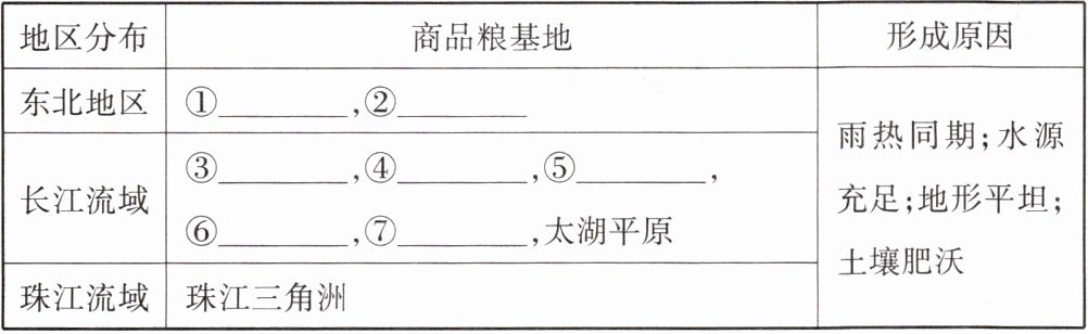 (1)①三江平原 ②松嫩平原 ③洞庭湖平原 ④鄱阳湖平原 ⑤成都平原 ⑥江汉平原 ⑦江淮地区