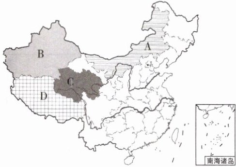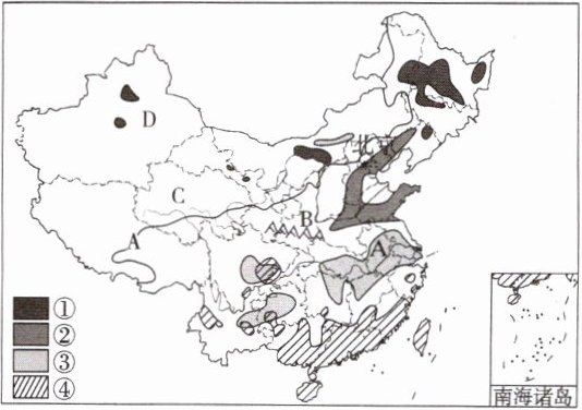 )。A. 曲线A是农耕区与畜牧区的界线,接近800毫米年等降水量线