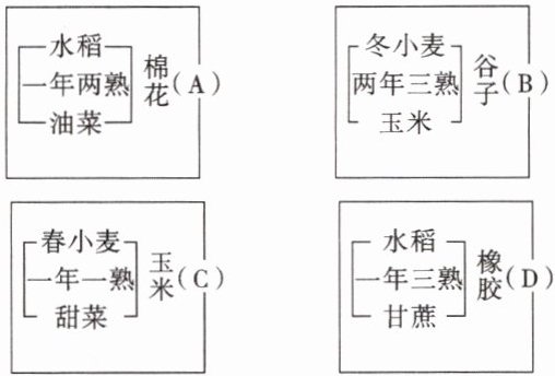 1. 下列农业区与图示耕作制度和主要农作物的搭配,正确的是(