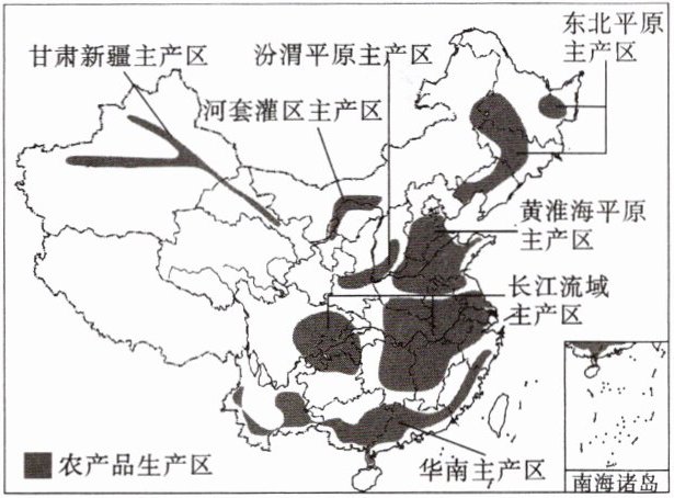 读中国农产品主要产区建设规划示意图,完成第7—8题。
