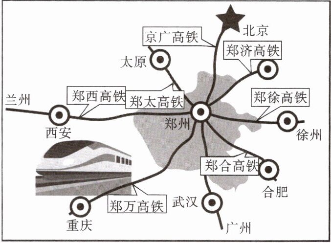 (2024·新疆中考)2023 年 12 月 8 日,郑济高铁(郑州—济南)全线贯通运营,山东、河南两省高铁实现手拉手,标志着河南“米”字形高铁网全面建成。读图,完成第 2—3 题。