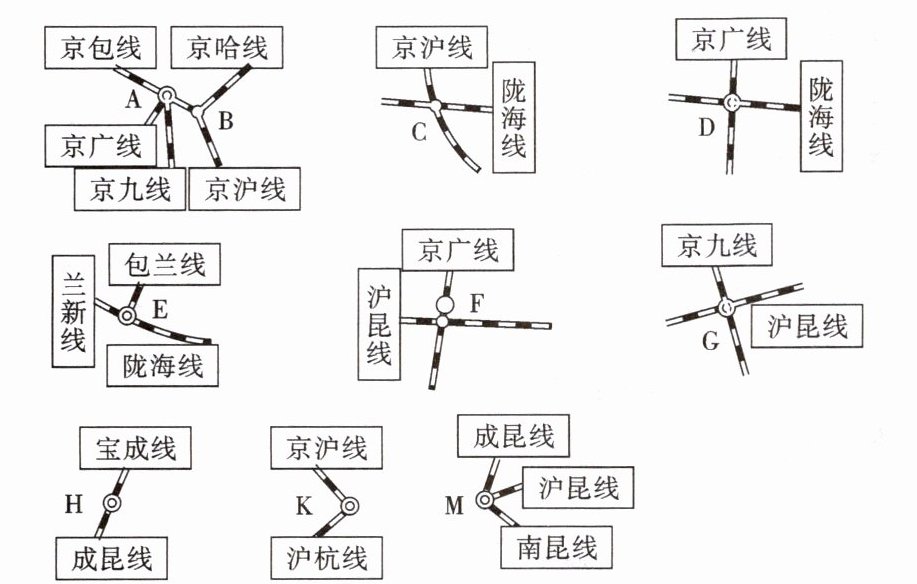 5.A北京 B天津 C徐州 D郑州 E兰州 F株洲 G南昌 H成都 K上海 M昆明