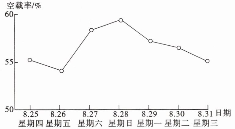 (2024·湖北中考)客运交通工具的空载率越大,说明当天载客的次数和乘客总数越少。下图示意上海市某年 8 月 25—31 日某种客运交通工具的空载率变化。据此完成第 9—11 题。