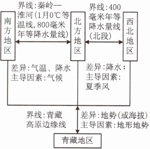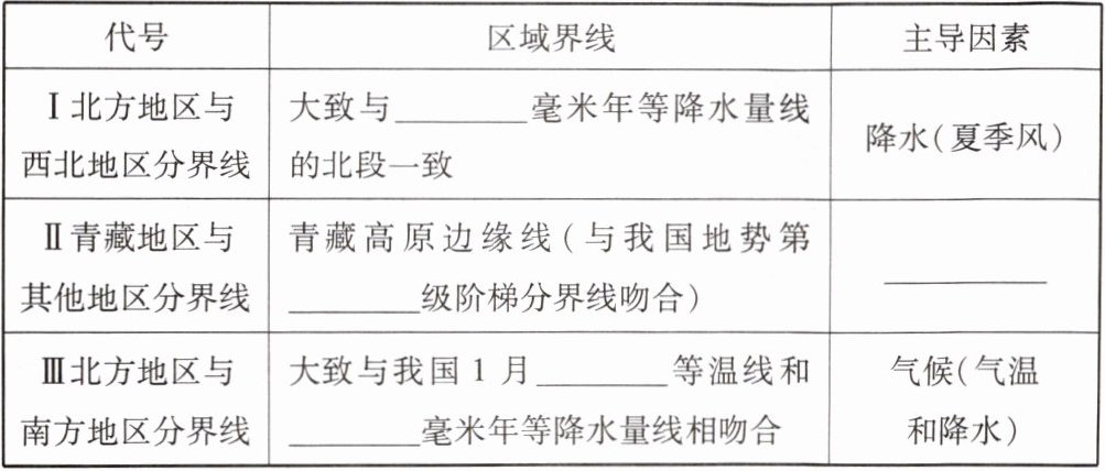 1.秦岭—淮河 400毫米年等降水量线 青藏高原边缘 北方 南方 西北 青藏