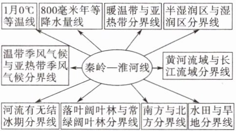 1月______℃等温线大致经过的地方;______毫米年等降水量线大致经过的地方;______地区与半湿润地区的分界线、暖温带与______的分界线、______与暖温带落叶阔叶林的分界线、水田与______的分界线、北方地区与______的分界线、______气候与______气候的分界线。