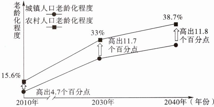 )。A. 图示阶段农村与城镇人口老龄化程度的差异逐步缩小