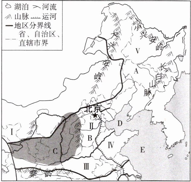 2. 在下列横线上填出图中罗马数字代表的省级行政区域的简称。
