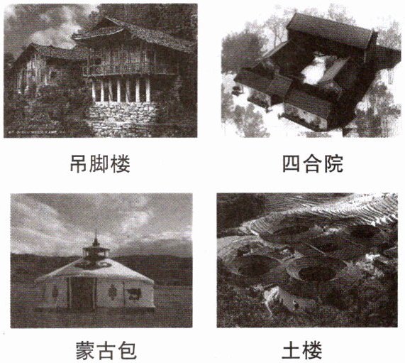 读我国传统民居景观图,完成第4—5题。