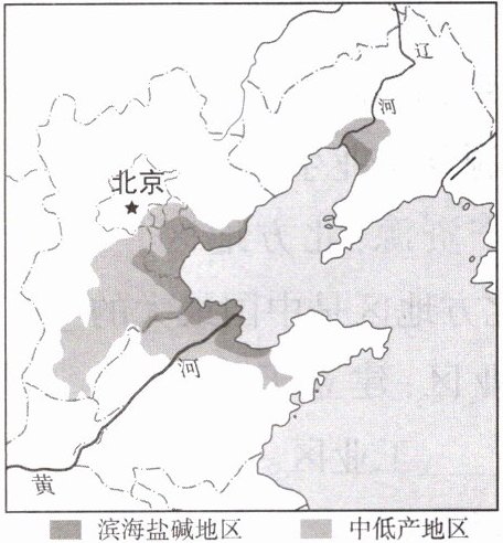 “渤海粮仓”是一项大型农业科技工程项目,计划通过对环渤海地区中低产田和滨海盐碱荒地(如图)的改造,实现增粮目的。读图,完成第6—7题。