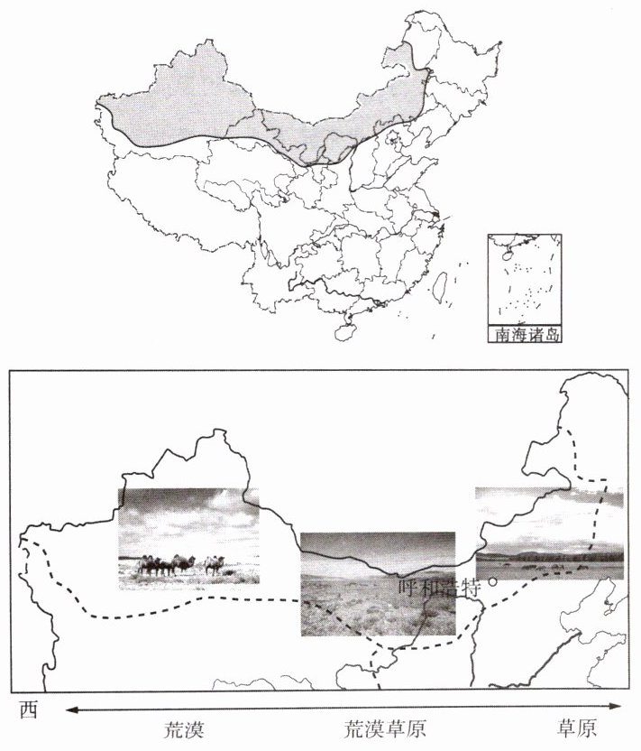1. 西北地区自东向西大致呈草原—荒漠草原—荒漠的变化,导致这种植被景观变化的主要原因是该地区(