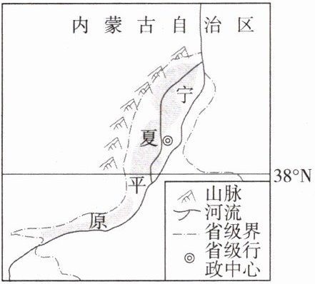 (2024·重庆中考)宁夏平原由于“大山护着”“大河爱着”,成为我国重要的商品粮基地,生产出的商品粮品质优良,自古享有“塞上江南”“西北明珠”的美称。读宁夏平原地区简图,完成第3—5题。