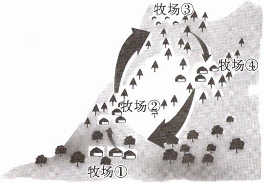 新疆天山地区的牧民,有迁移轮牧的历史传统。下图示意天山迁移轮牧过程。读图并结合所学知识,完成第7—8题。