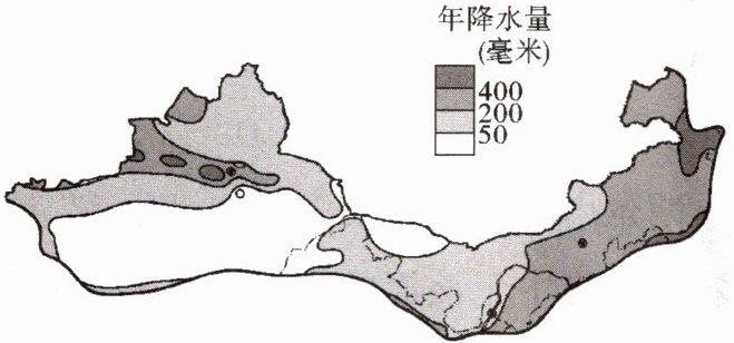 )。①降水稀少,气候干旱 ②山脉对湿润气流的阻隔 ③来自海洋的湿润气流难以到达 ④深居内陆,距海遥远