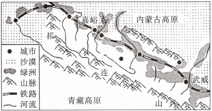 )。①有亚欧大陆桥经过 ②气候相对两侧湿润 ③地形相对两侧低平 ④绿洲农业发展基础好