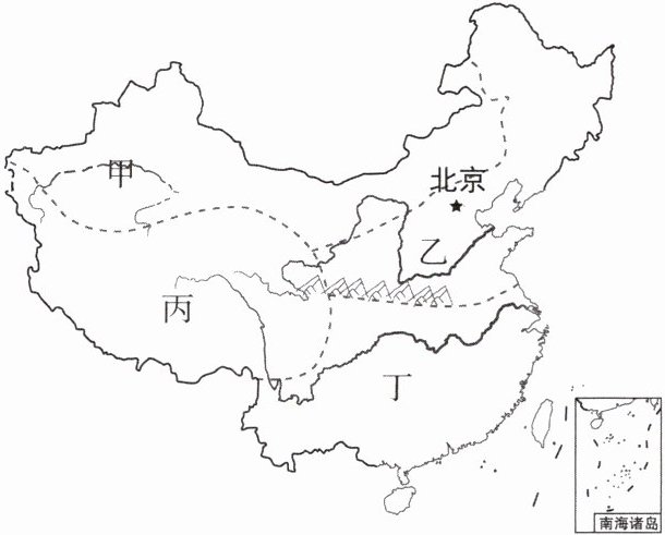 我国幅员辽阔,自然环境复杂多样,地域差异显著。下图为中国四大地理区域示意图。读图,完成第1—2题。